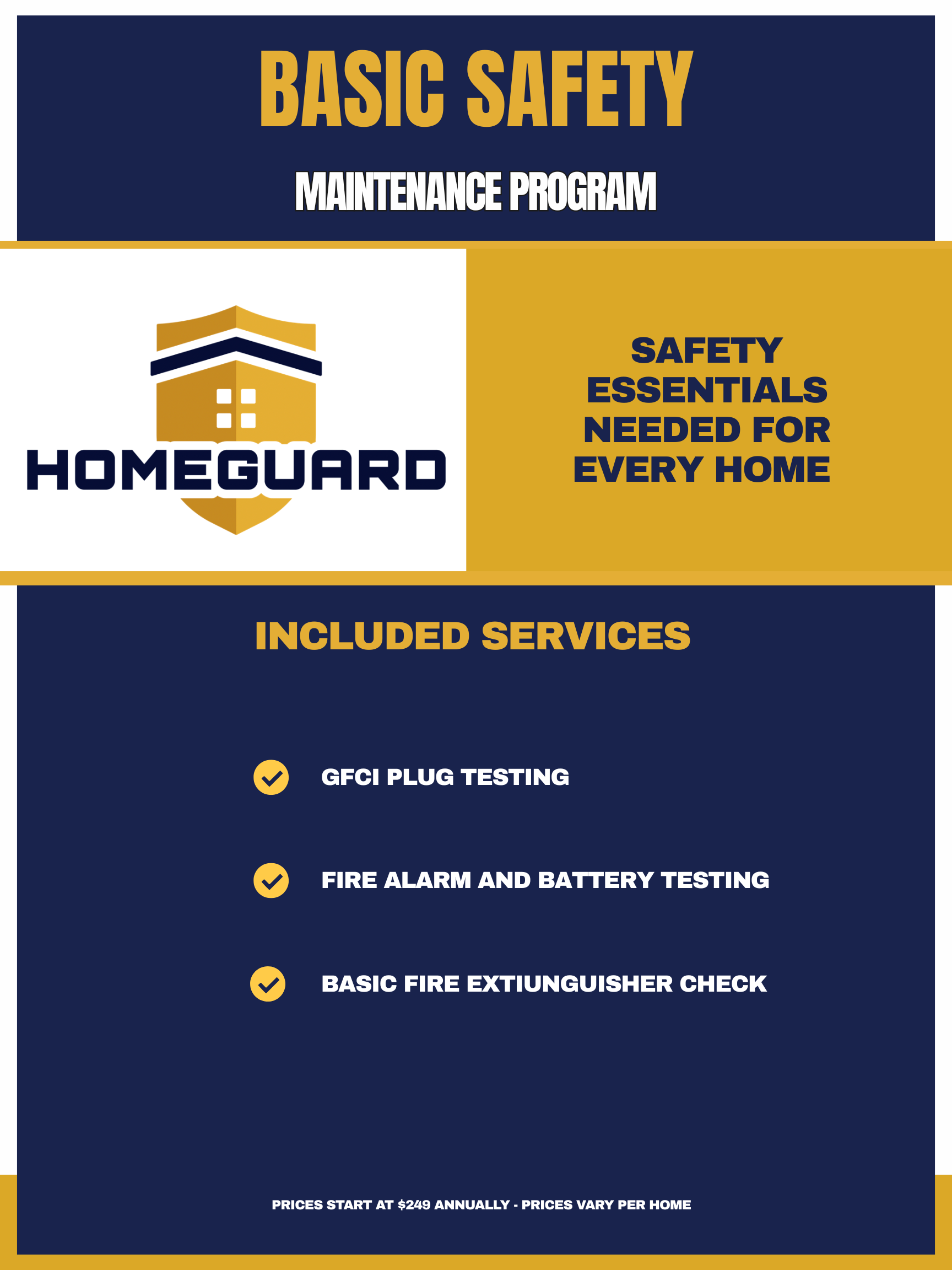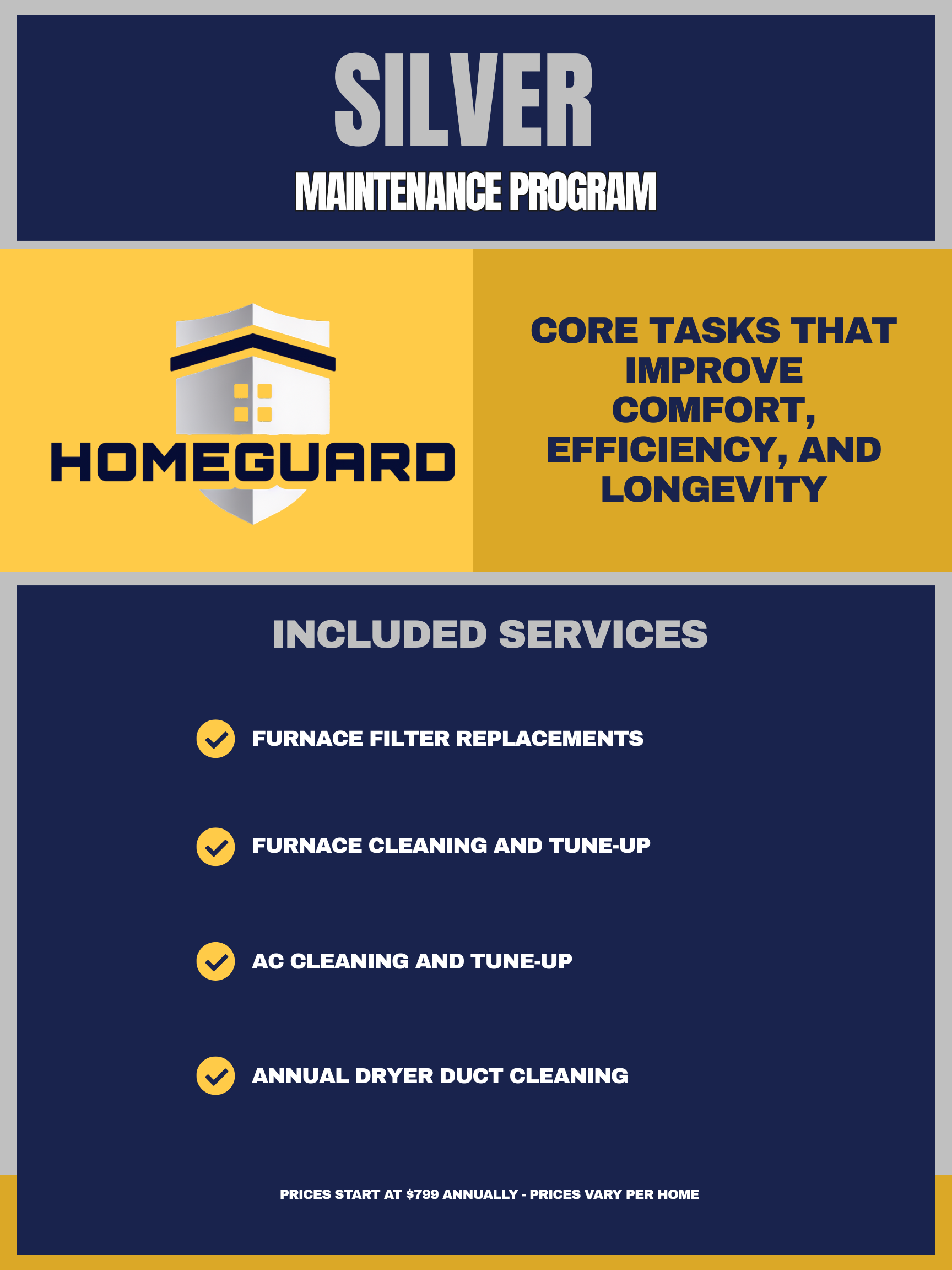 Complete a HomeGuard Program and earn our badges. We keep a maintenance log for each home so you can have a proven track record to boost your homes value if you decide to sell in the future. This displays: